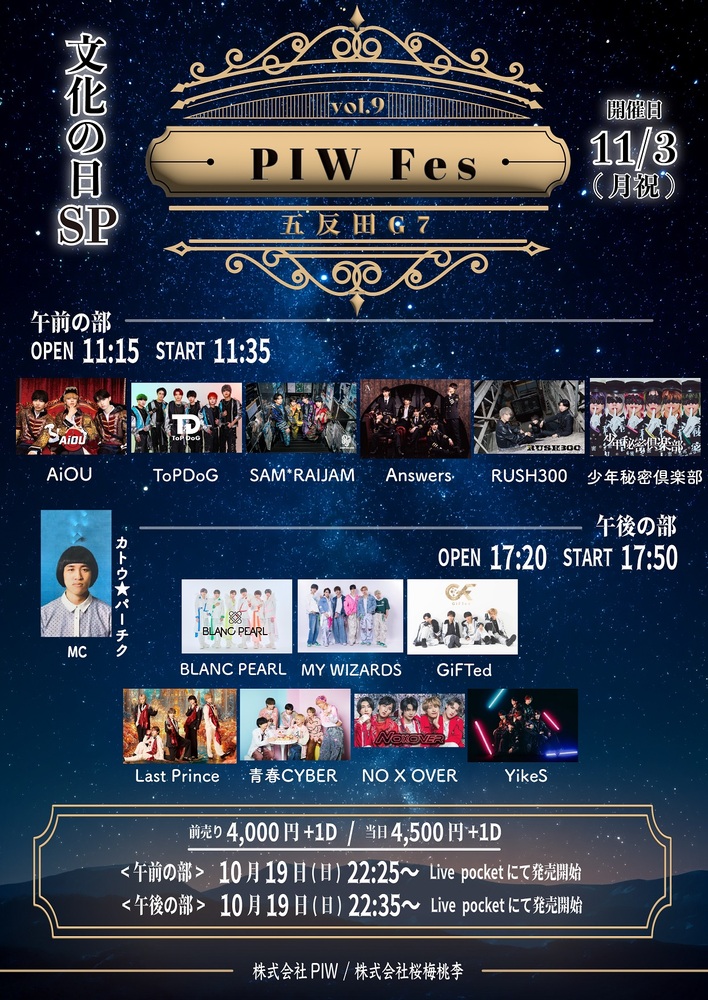 ライブ(五反田) Schedule 2025/11/03(月) 11:15 - 五反田G7 『〜PIW Fes Vol.9〜文化の日SP 午前の部』 🗓️11月3日(月•祝) 📍五反田G7 ⏰OPEN 11:15/START 11:35 🎤13:25〜13:45/📸13:50〜15:00 🎫前売り4,000円+1D/当日4,500円+1D ✍️チケット販売 10月19日(日)22:25〜 チケットページ URLをコピーする 報告する