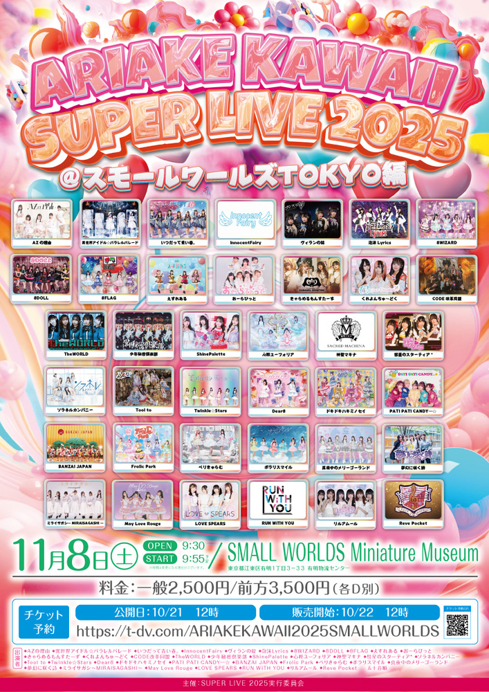 ライブ(有明) Schedule 2025/11/08(土) 09:30 - 有明スモールワールズ 公演日時 2025/11/8(土) 開場 9:30 / 開演 9:55 会場 SMALL WORLDS Miniature Museum チケット発売中! チケットページ URLをコピーする 報告する