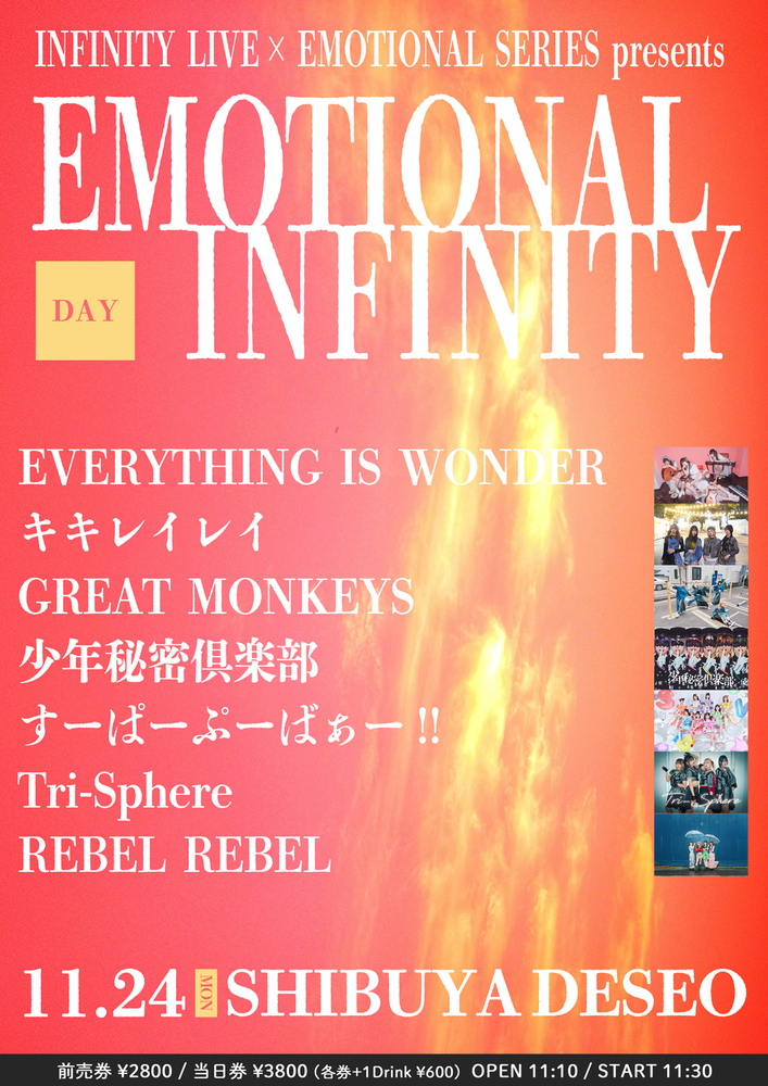 出演 EVERYTHING IS WONDER/キキレイレイ/GREAT MONKEYS / 少年秘密倶楽部 / すーぱーぷーばぁー!!/Tri-Sphere / REBEL REBEL