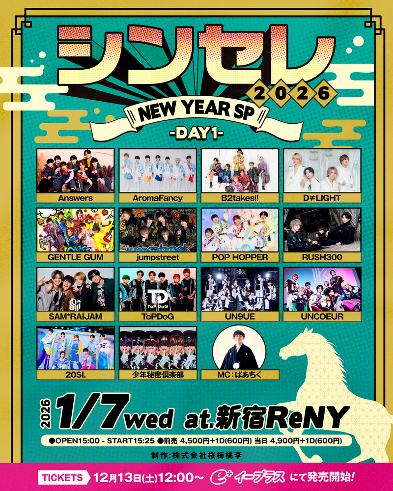 ライブ(新宿) Schedule 2026/01/07(水) 15:00 - 新宿ReNY 『シンセレ2026 NEW YEAR SP』🗓️2026年1月7(水)📍新宿ReNY⏰OPEN15:00 START15:25 🎫前売り4,500円+1D(600円) 当日券4,900円+1D✍️前売りチケット12月13日(土)12:00〜 チケットページ URLをコピーする 報告する